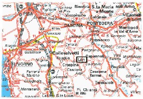 da Pisa: prendere la SS206 Emilia in direzione Collesalvetti, quindi deviazione a Vicarello sulla provinciale in direzione Cenaia-Lari.